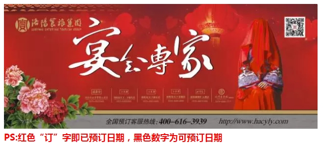 洛陽(yáng)餐旅集團(tuán)旗下各店2017年8月-11月可預(yù)訂宴會(huì)日期一覽表(7.17更新) 發(fā)布時(shí)間:2017-07-18來(lái)源:點(diǎn)擊:2349 分享到:0 用手機(jī)看 拍下二維碼,信息隨身看 試試用微信掃一掃,在你手機(jī)上繼續(xù)觀看此頁(yè)面。 上一篇:宴天下老城店宴會(huì)大廳***升級(jí)!全新力作打造洛陽(yáng)******多功能主題餐宴會(huì)廳 下一篇:悅圓,人團(tuán)圓 | 洛陽(yáng)餐旅集團(tuán)月餅禮盒開(kāi)始火熱預(yù)訂了!