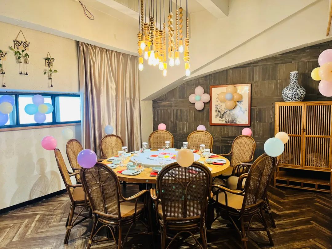 主題鮮明又氣氛歡樂的宴席布場完成。